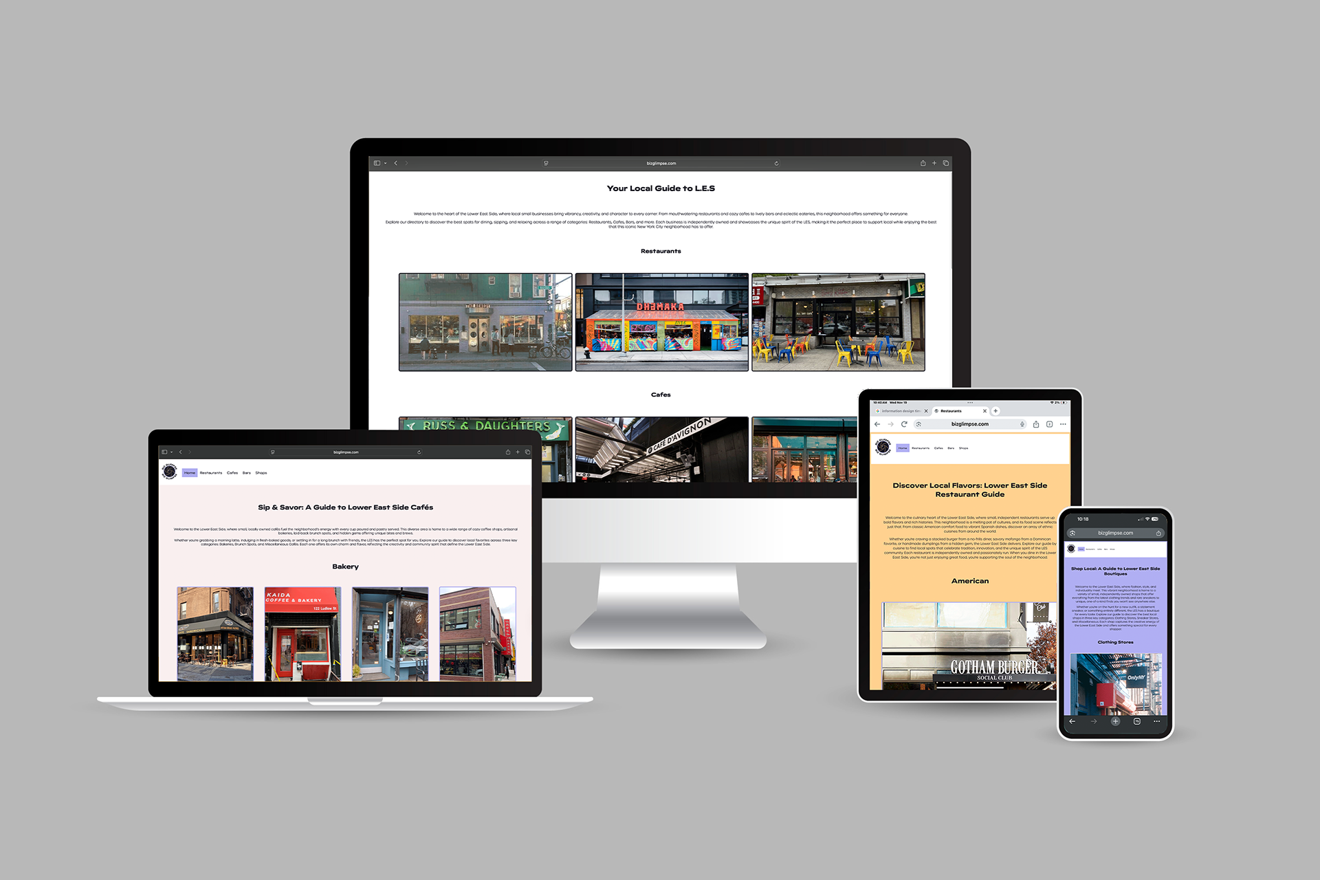 BizGlimpse is a dedicated website that highlights and supports local small businesses in the Lower East Side. The goal of the project was to design a digital space that makes it easy for users to discover neighborhood restaurants, cafés, shops, and bars, all found in one well-organized, visually engaging directory. I coded this website using HTML & CSS on Visual Studio Code.